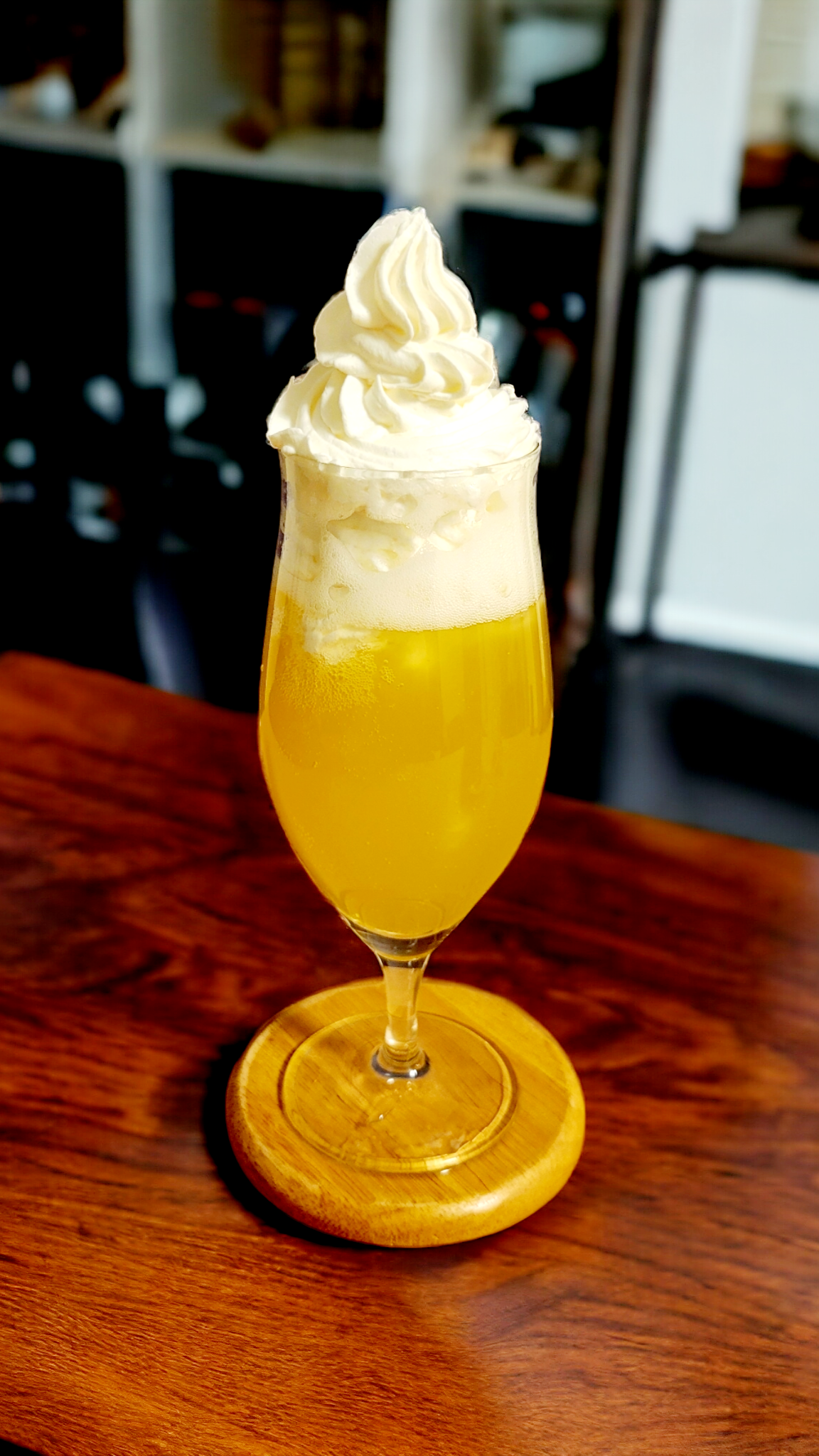 Recipes instruct to crush the ice until it is shaved and serve in champagne glasses with a leaf of hierba buena.
