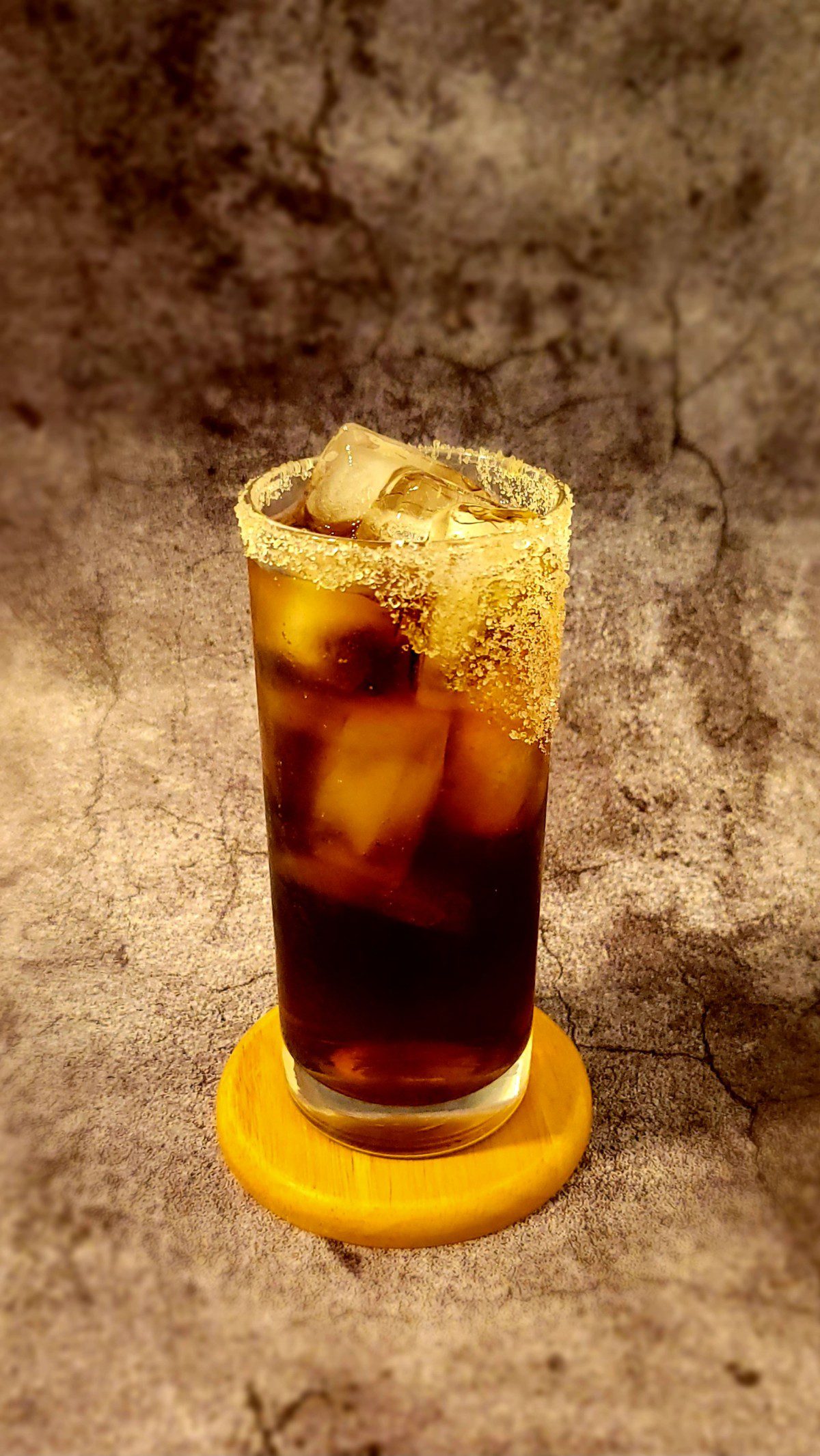 A batanga is a cocktail made with tequila, lime juice, and cola, and served in a glass with a salted rim.