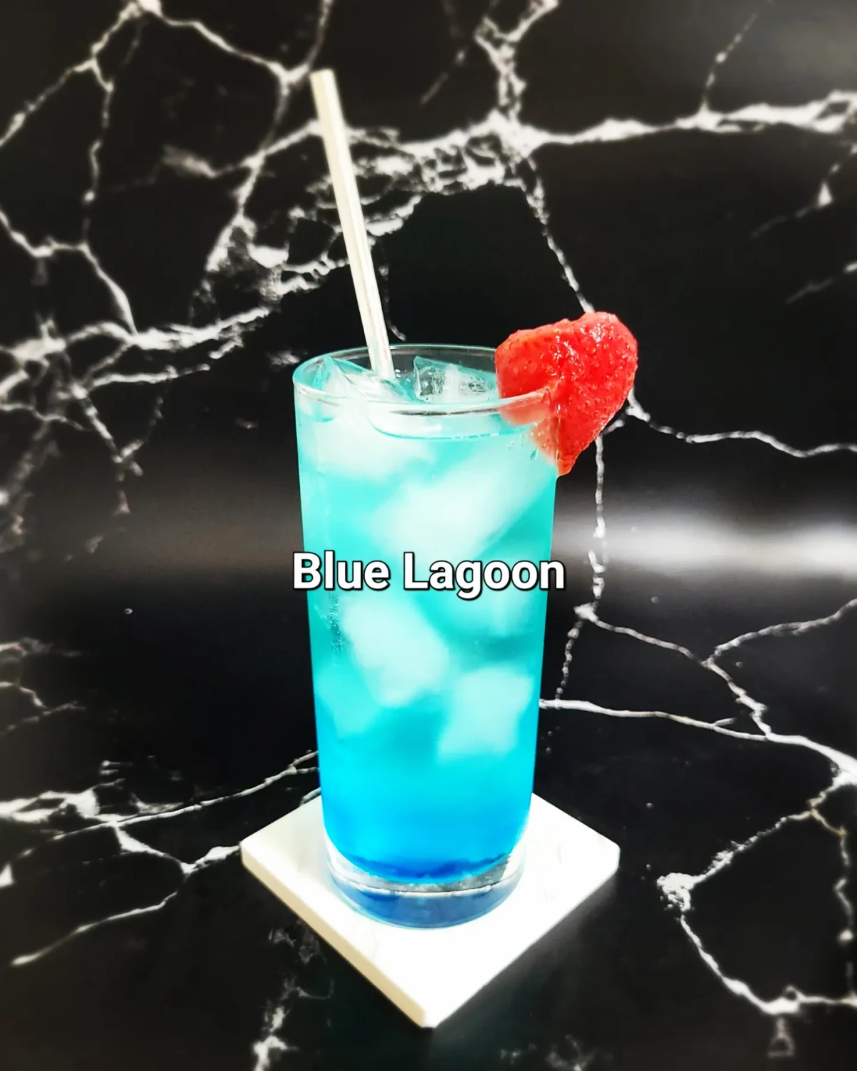 Blue lagoon is typically served in a highball glass.