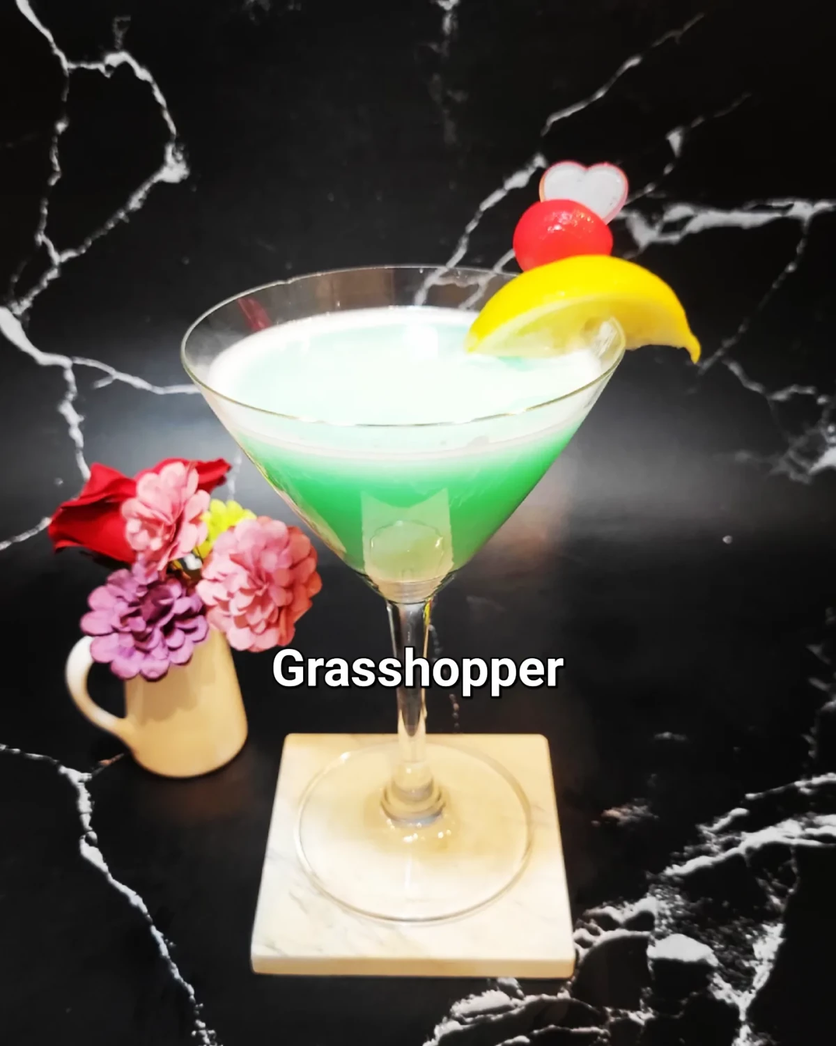 A Grasshopper is a sweet, mint-flavored, after-dinner drink.