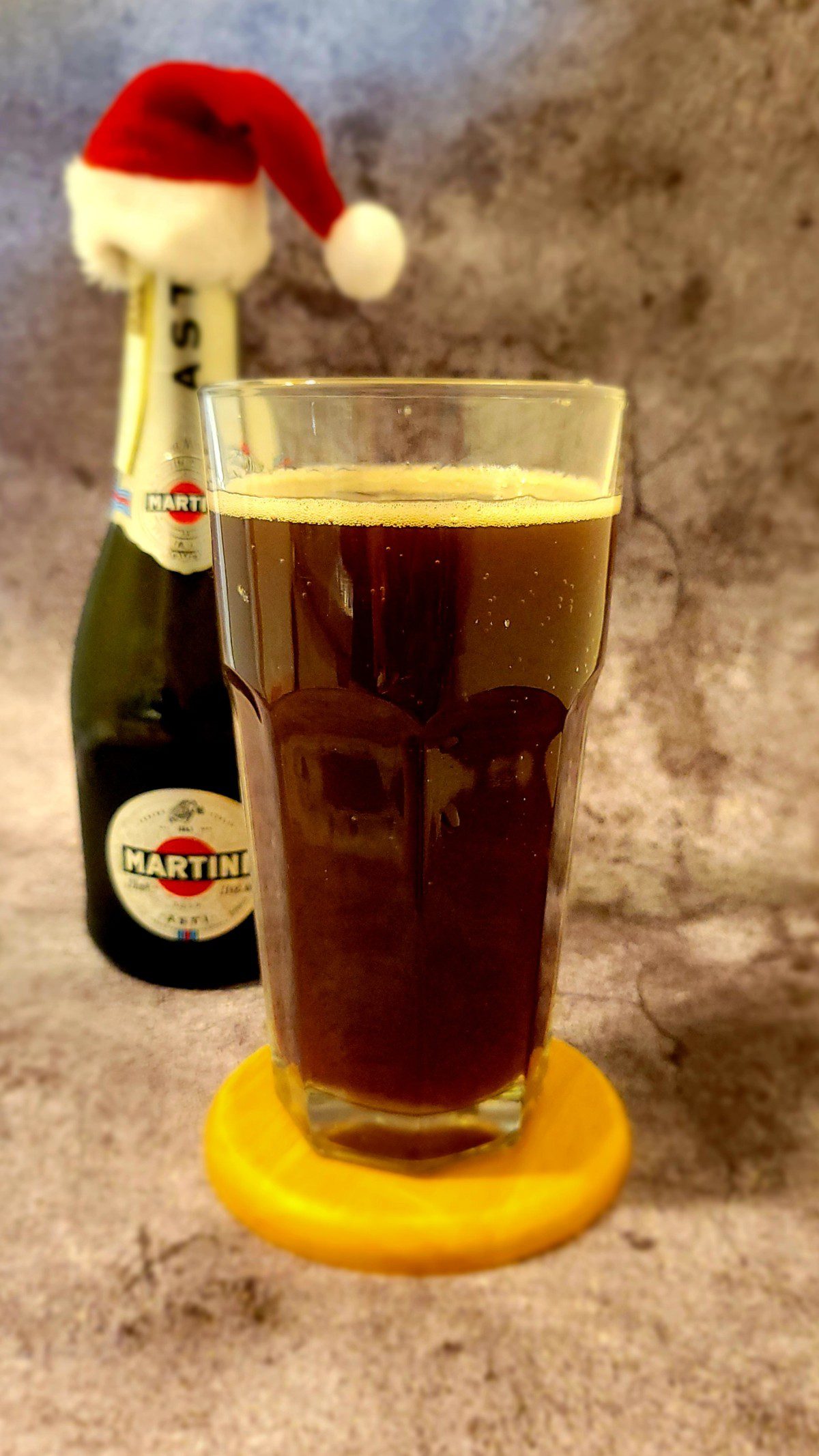A small bottle of stout is added and the drink is topped with champagne.