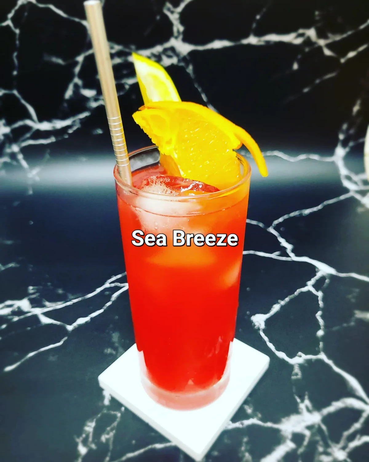 A sea breeze is a cocktail containing vodka with cranberry juice and grapefruit juice.