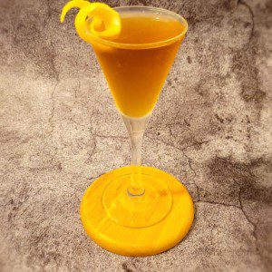 It consists of a shot glass of cointreau, an orange liqueur dropped into a glass containing red bull.