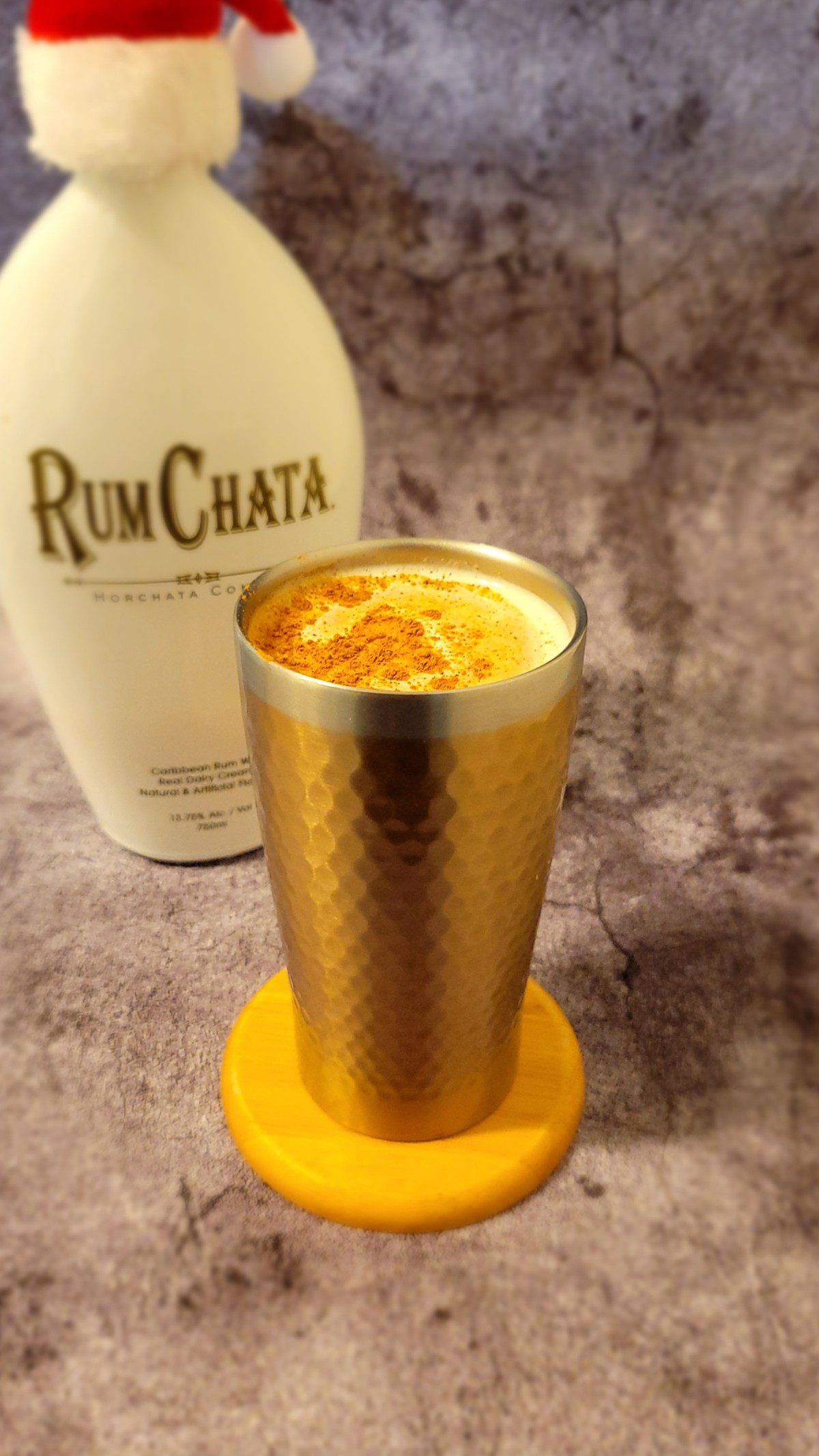 It is a variant of eggnog with brandy and rum added and served hot, usually in a mug or a bowl.