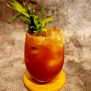 The shot glass then “surfaces” when the cocktail is drunk.